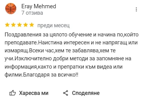 Обучението ще се проведе в платформата Google Meet, като не е нужно да теглиш нищо, влизаш без никакви регистрации!